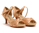Erlebe Bella in Champagnerfarbe. Bella verleiht deinem Tanz einen strahlenden Glanz. Die schlichte Eleganz und das ästhetische Design bieten unvergleichlichen Komfort. Dieses Modell ist ideal für diejenigen, die sich auf dem Parkett hervorheben möchten. Bella verkörpert den traditionellen lateinamerikanischen Stil mit ihrer Wildledersohle und dem 5,5 cm Flare Elite-Absatz. Perfekt geeignet für Tänze wie Salsa und Bachata sowie für lateinamerikanische Gesellschaftstänze wie Samba, Cha Cha Cha, Rumba und Jive. Doch Bella ist nicht nur für lateinamerikanische Tänze geeignet – sie ist auch perfekt für Amateure, die Standardtänze wie Walzer, Tango und Foxtrott beherrschen möchten. Mit ihrem stabilen Absatz, ihrer hochflexiblen Sohle und ihrem zeitlosen Design wird Bella jeden Tanz zu einem wahren Kunstwerk machen.