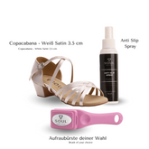 Pro Competition Set – Dein Rundum-sorglos-Paket für den perfekten Tanzauftritt! Dieses Set enthält alles, was du für optimale Performance und umfassende Schuhpflege benötigst: ein Paar hochwertiger Tanzschuhe, Absatzschoner (bei Sets mit Damenlateinschuhen), unser Anti-Slip Spray für rutschige Parkettböden und eine Aufraubürste in deiner Wunschfarbe für die ideale Pflege deiner Schuhe. Alles in einem stilvollen, praktischen und preislich attraktiven Set zusammengestellt – bequem, umfassend und unschlagbar!