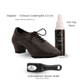 Pro Competition Set – Dein Rundum-sorglos-Paket für den perfekten Tanzauftritt! Dieses Set enthält alles, was du für optimale Performance und umfassende Schuhpflege benötigst: ein Paar hochwertiger Tanzschuhe, Absatzschoner (bei Sets mit Damenlateinschuhen), unser Anti-Slip Spray für rutschige Parkettböden und eine Aufraubürste in deiner Wunschfarbe für die ideale Pflege deiner Schuhe. Alles in einem stilvollen, praktischen und preislich attraktiven Set zusammengestellt – bequem, umfassend und unschlagbar!