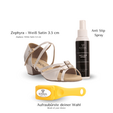 Pro Competition Set – Dein Rundum-sorglos-Paket für den perfekten Tanzauftritt! Dieses Set enthält alles, was du für optimale Performance und umfassende Schuhpflege benötigst: ein Paar hochwertiger Tanzschuhe, Absatzschoner (bei Sets mit Damenlateinschuhen), unser Anti-Slip Spray für rutschige Parkettböden und eine Aufraubürste in deiner Wunschfarbe für die ideale Pflege deiner Schuhe. Alles in einem stilvollen, praktischen und preislich attraktiven Set zusammengestellt – bequem, umfassend und unschlagbar!