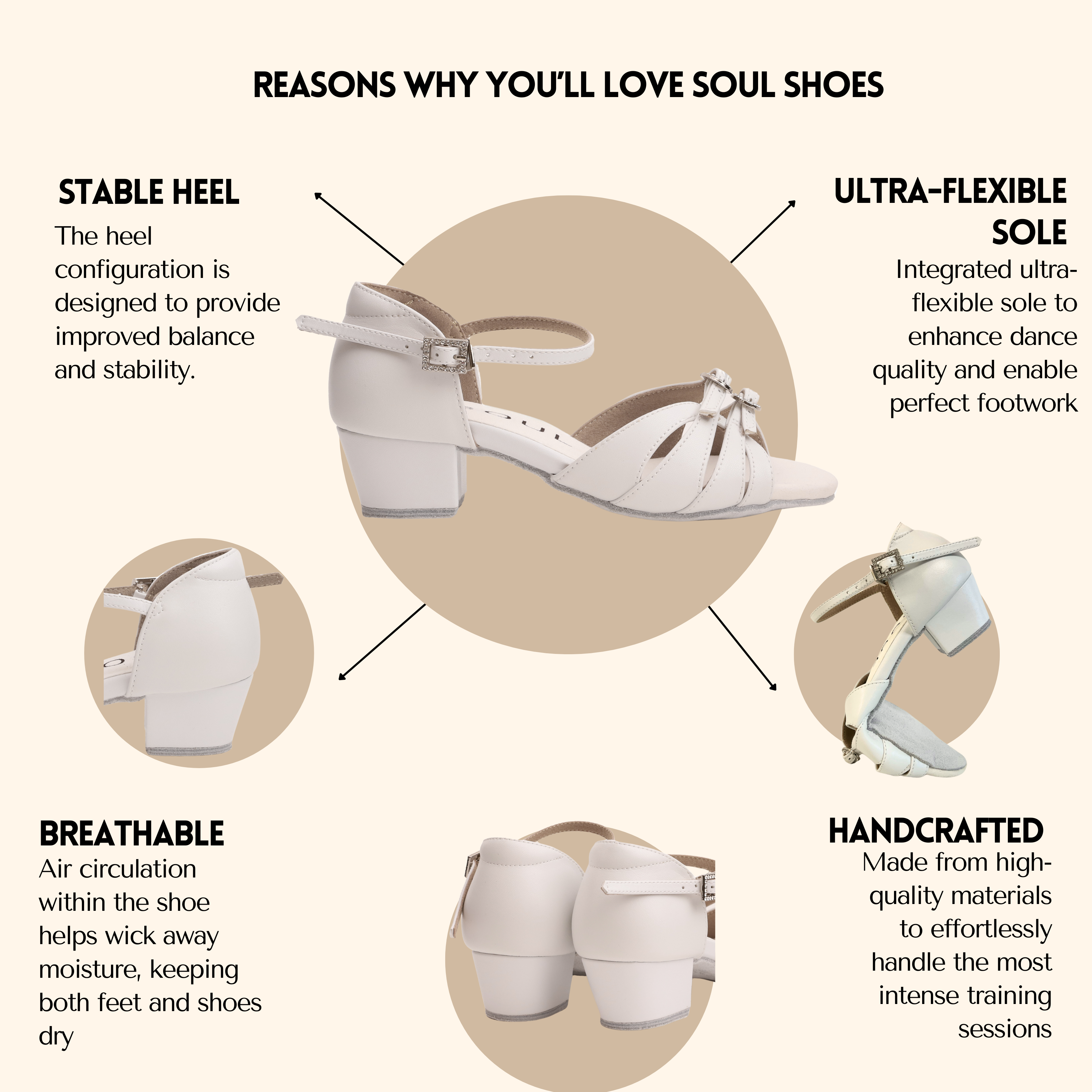 Die Mehrheit der Tanzschuhe von Soul ist mit einer flexiblen Sohle ausgestattet. Diese Sohle ermöglicht eine hervorragende Fußarbeit und Flexibilität, da sie sich gut beugen lässt. Der Supinator ist kürzer gestaltet, um diese Biegung zu erleichtern. Im Gegensatz dazu ist eine normale Sohle mit einem etwas längeren Supinator gestaltet und daher weniger flexibel. Die flexible Sohle ist sowohl für Profis als auch für Amateure geeignet, während die normale Sohle für Einsteiger in die Welt des Tanzens empfohlen wird.