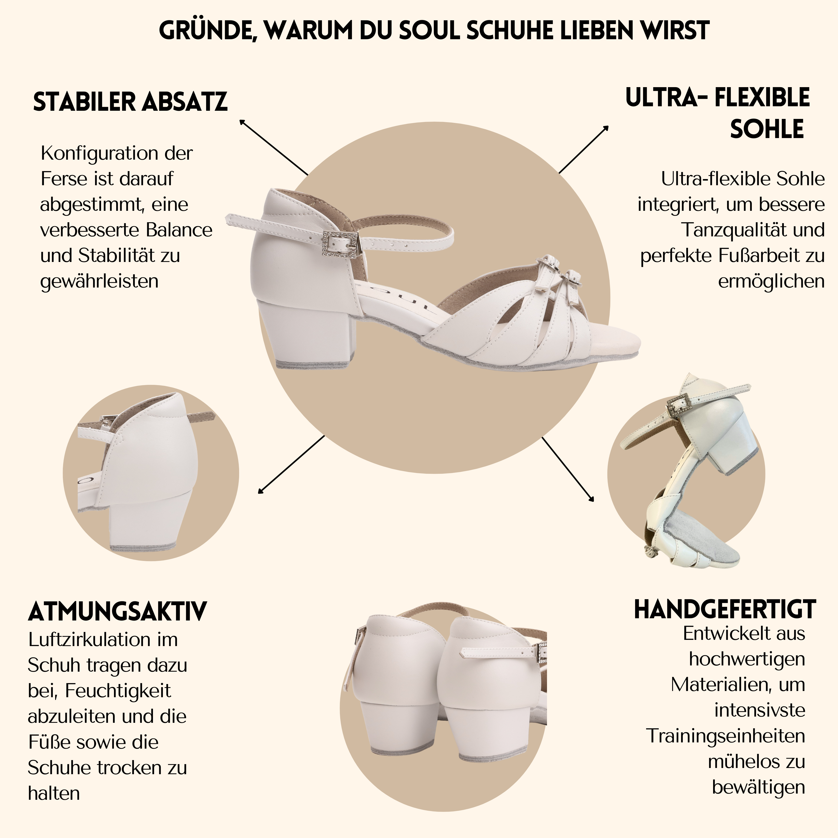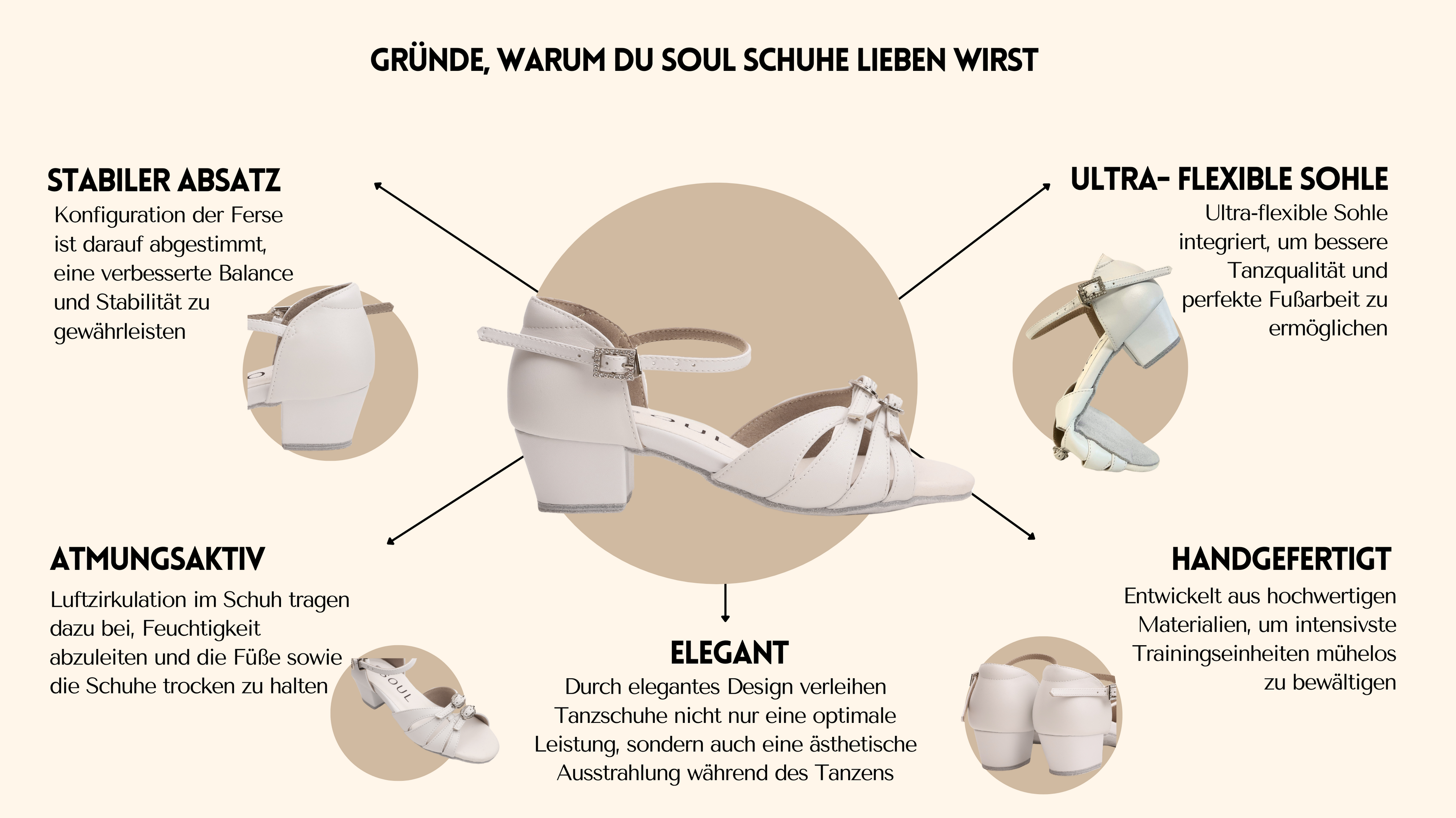 Die Tanzschuhe von SOUL sind für eine breite Palette von Tänzern geeignet, darunter Anfänger, Amateure und auch professionelle Tänzer. Mit verschiedenen Absatzarten bieten sie eine passende Auswahl für jedes Niveau und Bedürfnis. Hier geht es zur Darstellung von Absatzarten.